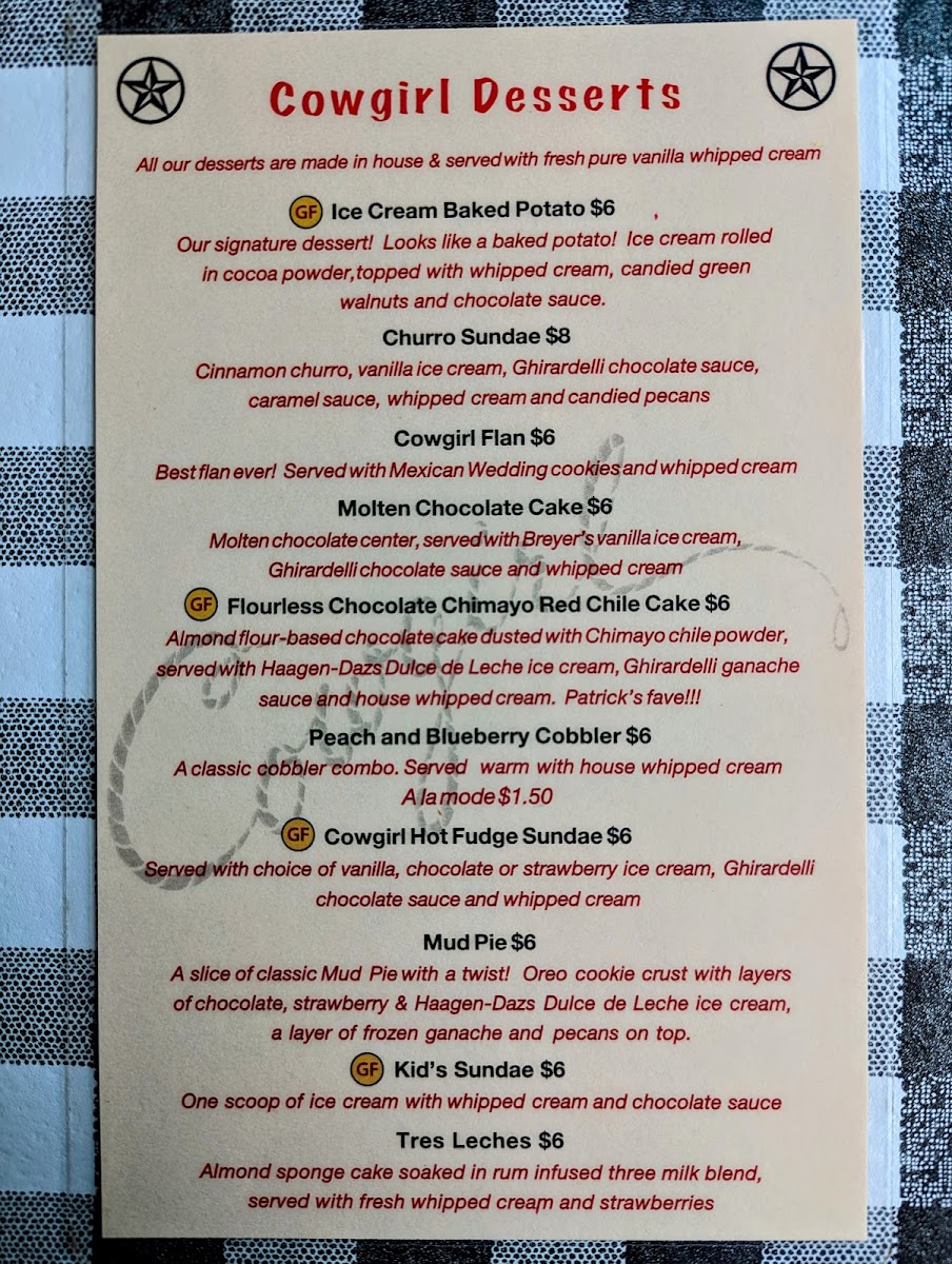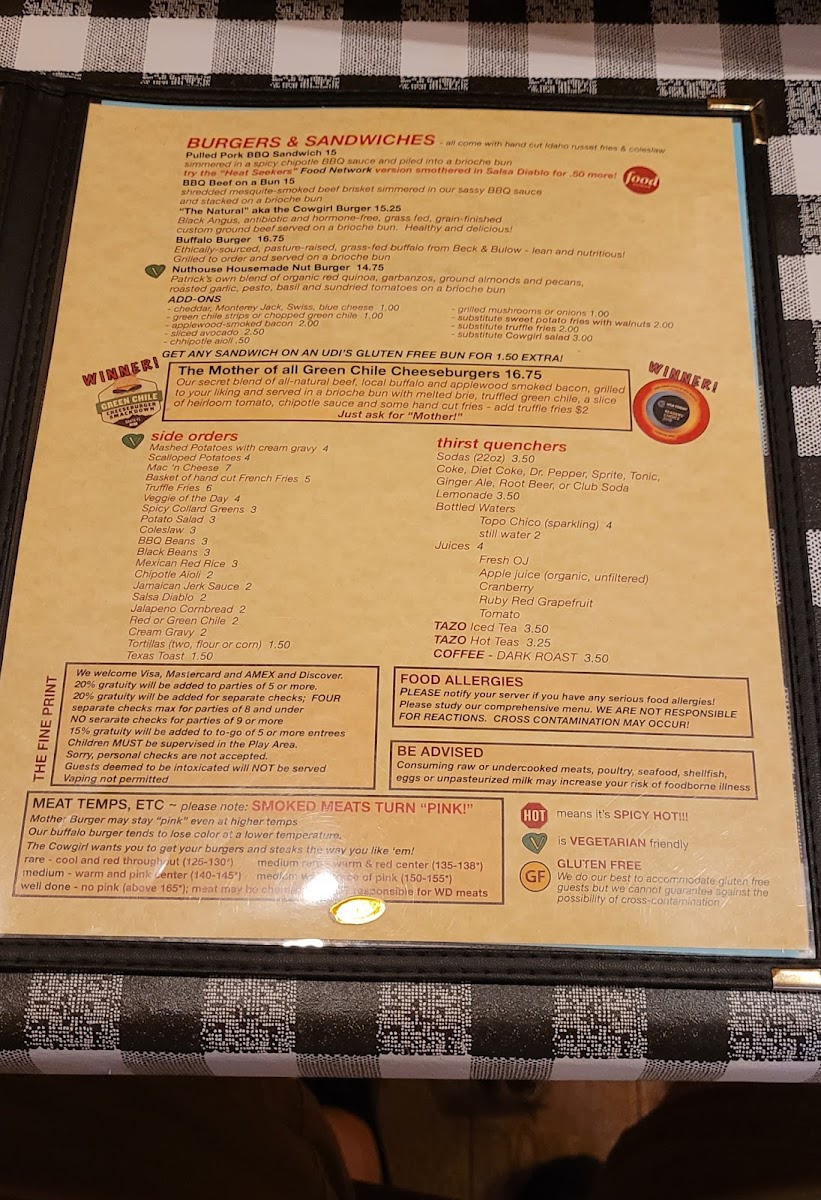 Welcome to Cowgirl, an authentic Southwestern gem located at 319 S Guadalupe St, Santa Fe. This lively eatery offers a vibrant atmosphere infused with local charm, perfect for both casual dining and spirited gatherings. The menu showcases a delightful array of dishes that reflect a true love for country-style cuisine.
